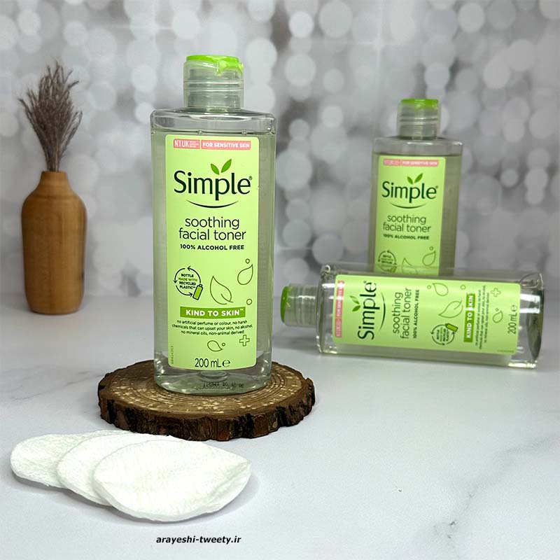 استفاده از این محصول می تواند علاوه بر کمکی که به تنظیم pH پوست شما می کند، می تواند برای آبرسانی پوست شما نیز بسیار مفید بوده و به تسکین پوست شما نیز کمک نماید. تونر سیمپل مدل kind to skin یک محصول عالی برای کمک به سلامت پوست و پاکسازی آن می باشد که به دلیل عدم استفاده از ترکیبات شیمیایی مختلف مانند الکل و پارابن، برای پوست های حساس نیز مناسب می باشد.