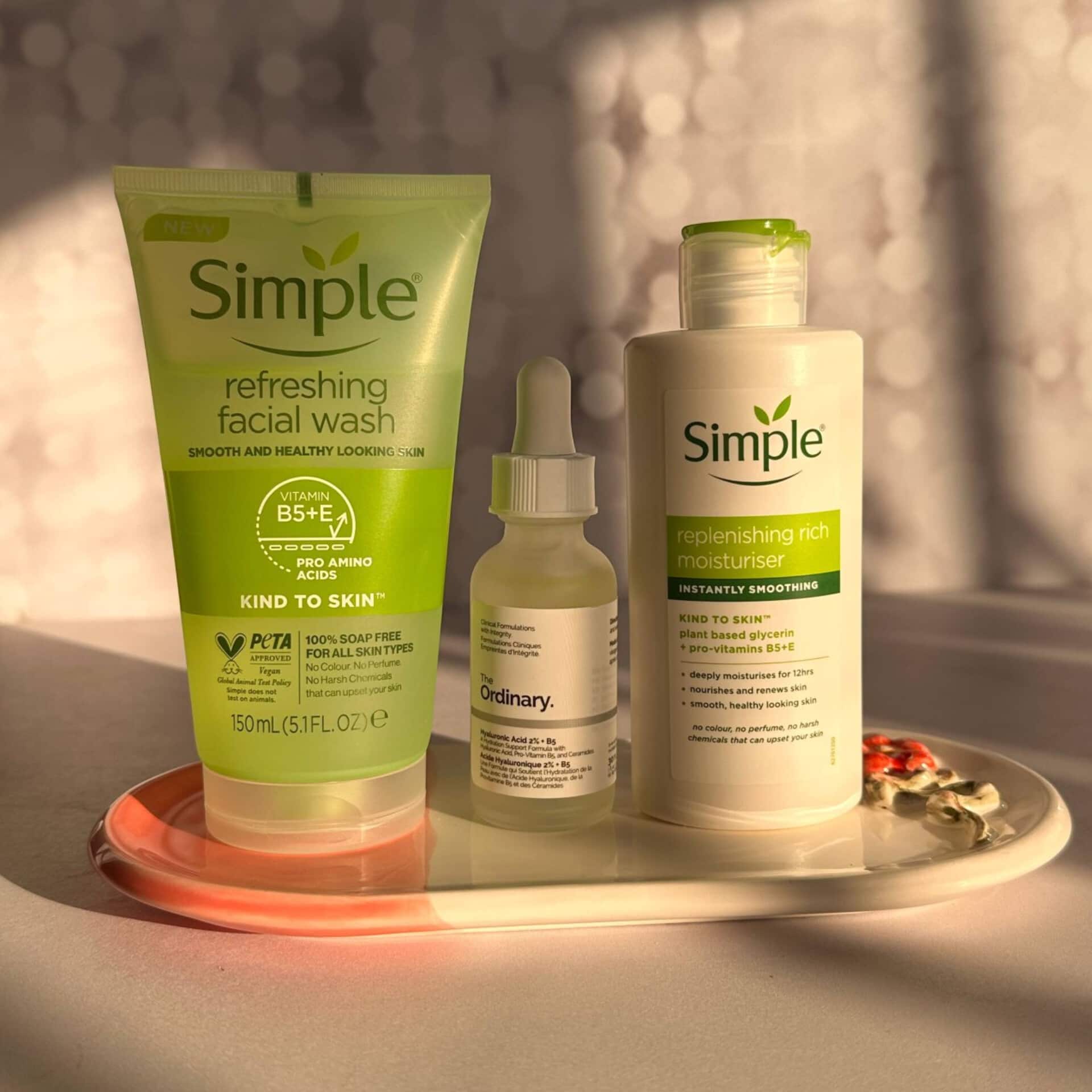 این پک روتین پوستی اقتصادی شامل یه شوینده مناسب برای انواع پوست مدل رفرشینگ سیمپل برای پاک سازی پوست از آلودگی های روزمره، سرم هیالورونیک اوردینری برای آبرسانی عمقی پوست صورت وکرم آبرسان ومرطوب کننده سیمپل برای حبس رطوبت پوست تشکیل شده است.