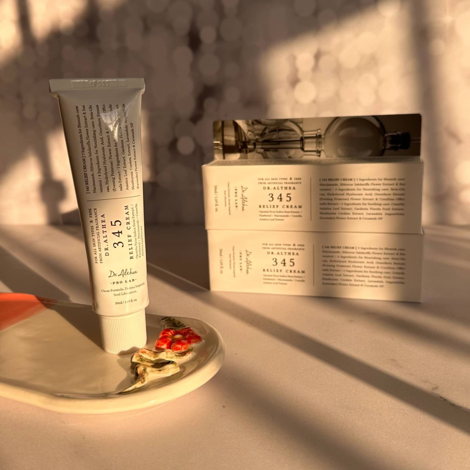 کرم ترمیم کننده دکتر آلتیا ۳۴۵ (Dr. Althea) از کرهجنوبی است و محصولی کاملاً گیاهی و سرشار از مواد طبیعی شامل ویتامین B3، سرامید، بتاگلوکان، رسوراترول، هیالورونیک اسید، عصاره گل پامچال، عصاره برگ قلب و سنتلا آسیاتیکا است که موجب ترمیم، شفاف و تغذیه پوست میشود.